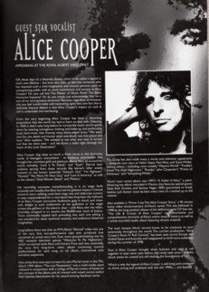 Alice Cooper performed as part of the British Rock Symphony with other artists such as Roger Daltrey, Peter Frampton and many others. The tour came to Australia billed as The Ultimate Rock Symphony . This is a good sized all colour tour program which has a 2 page article dedicated to Alice Cooper. There are also several other photographs of Alice throughout the program.